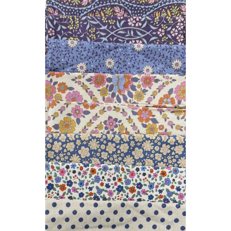 TILDA - SPECIAL FAT QUARTER PACK #17 - Blue/Mauve - 8 fat Quarters