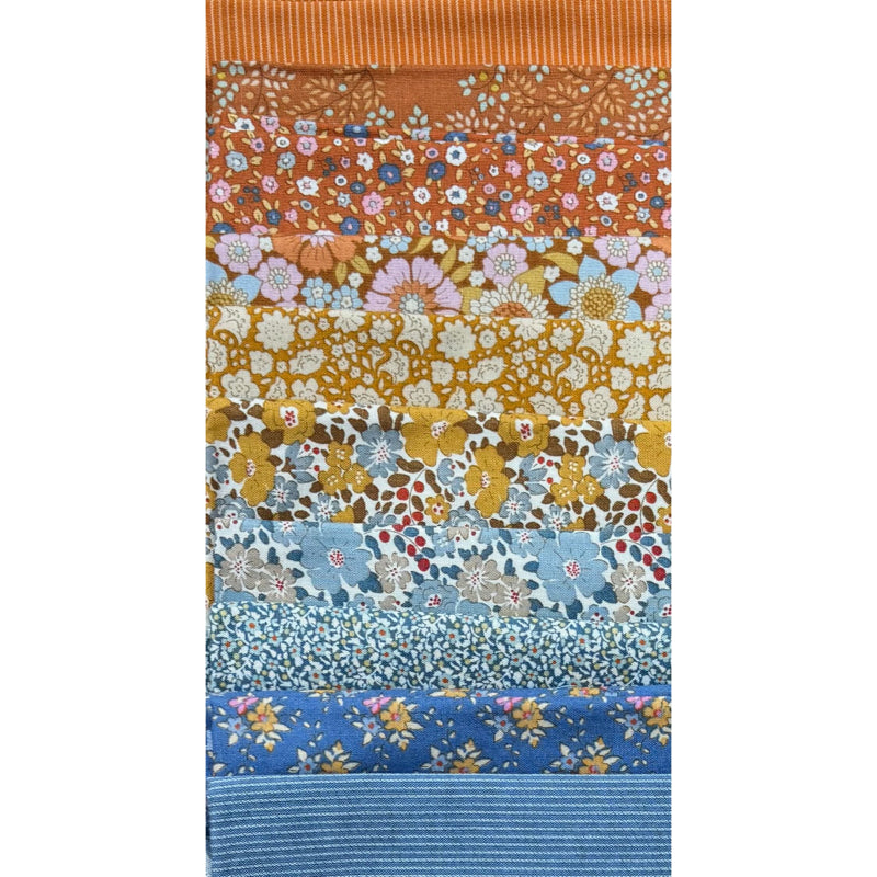 TILDA - SPECIAL FAT QUARTER PACK #20 - Blue/Orange/Tan - 10 Fat Quarters