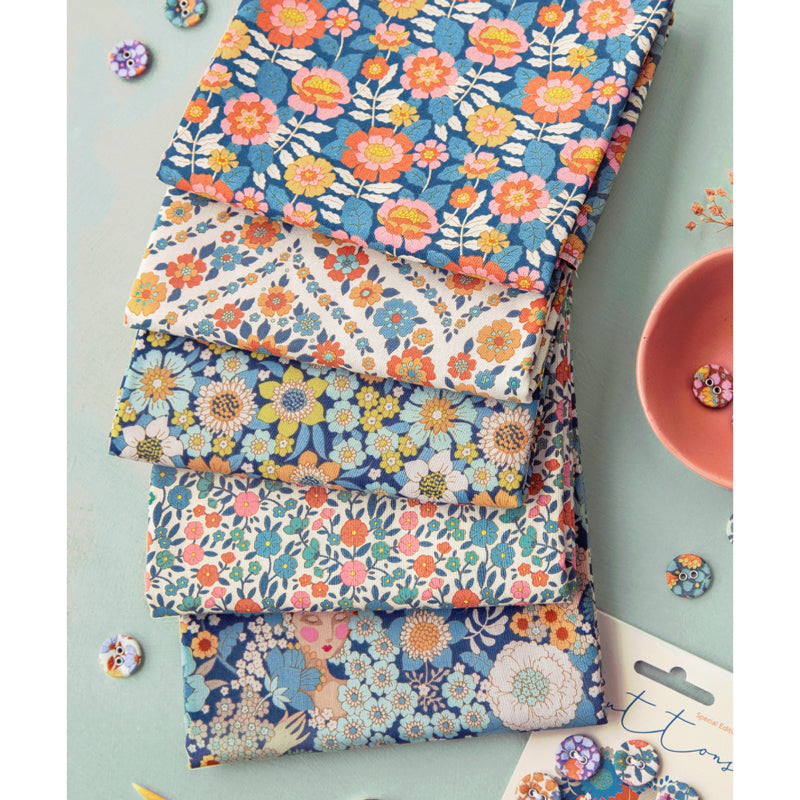 Tilda Wallflower - Blue Bundle - 5 pieces each 30cm x 55 cm - WAS $27 NOW $15 (Equivalent to 75cm)